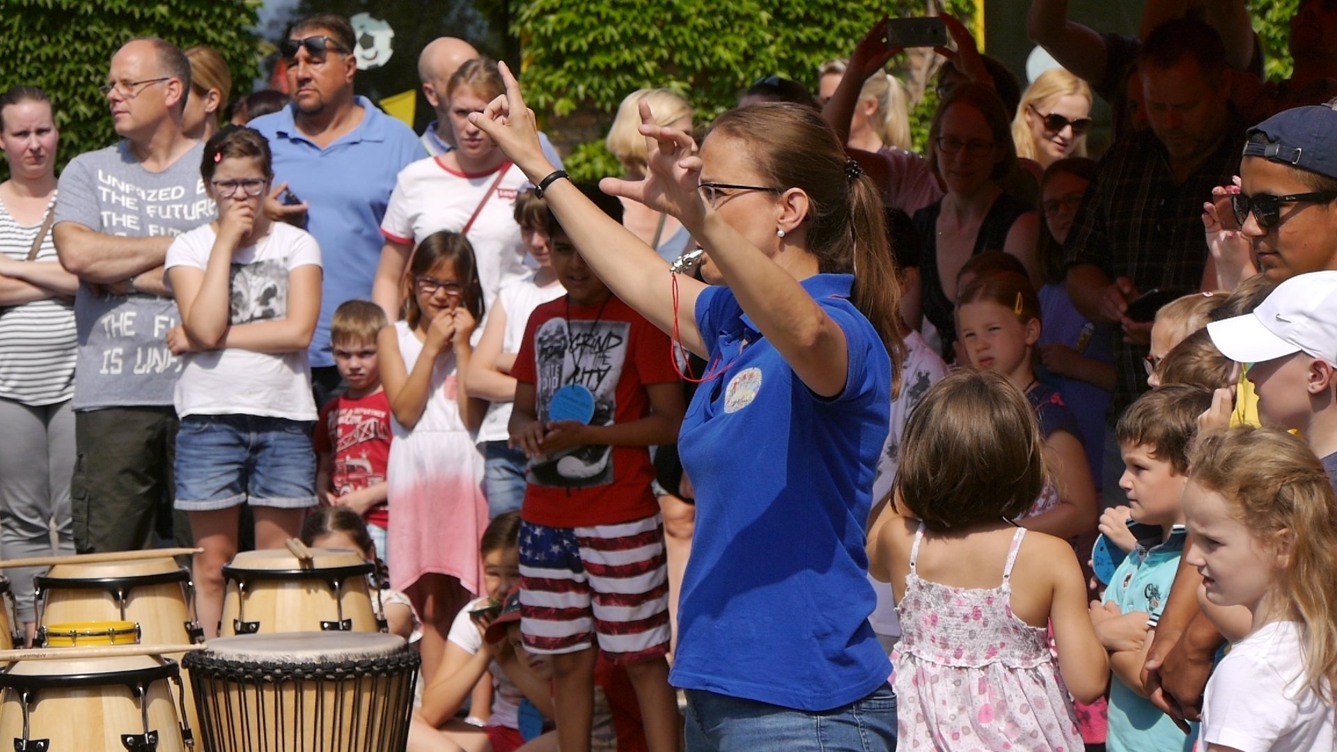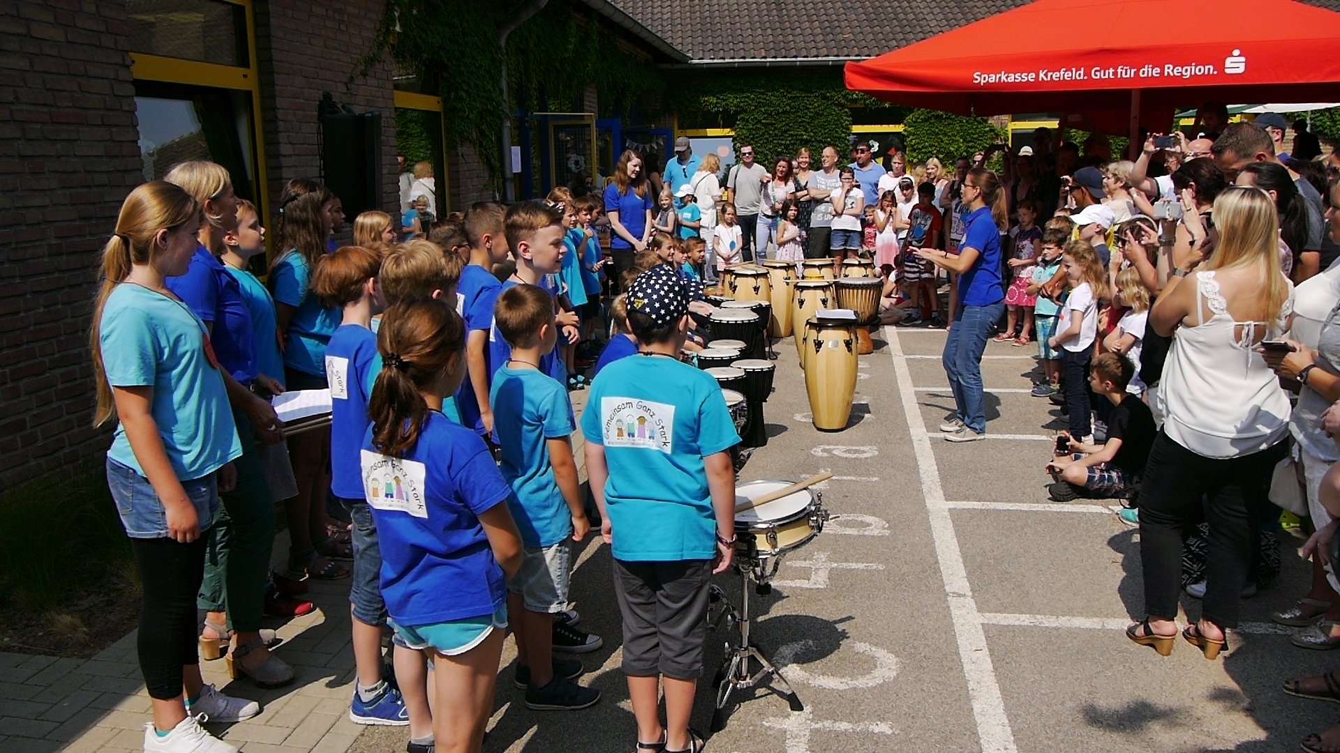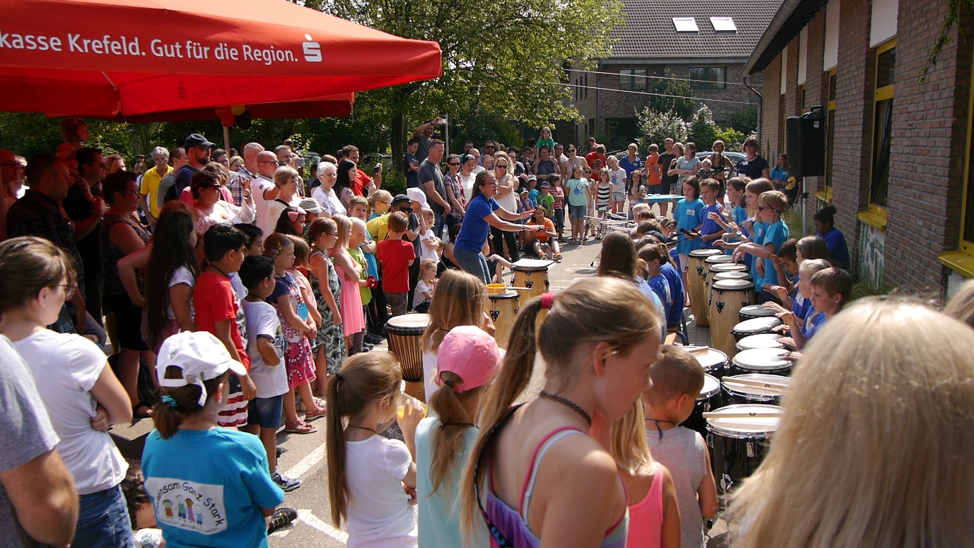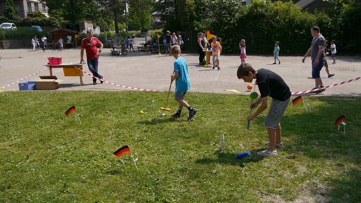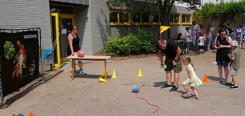 Eröffnet wurde das Schulfest zunächst mit einem Fußballrythmical der Trommel-AG und einer Eröffnungsrede unserer Schulleitung Frau Ihl. Danach waren die Ball-Stationen freigegeben. Diese hatten sich die Eltern und Kinder der vierten Klassen im Vorfeld ausgedacht und betreuten die Stationen auch an diesem Tag.