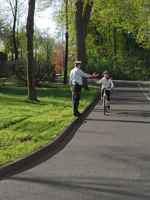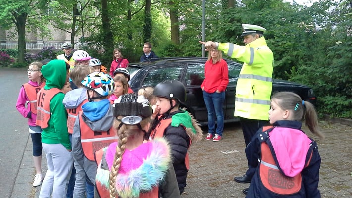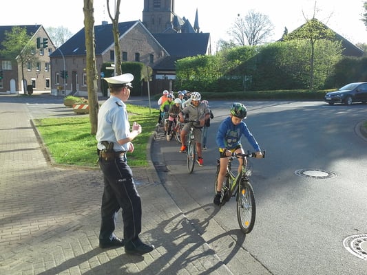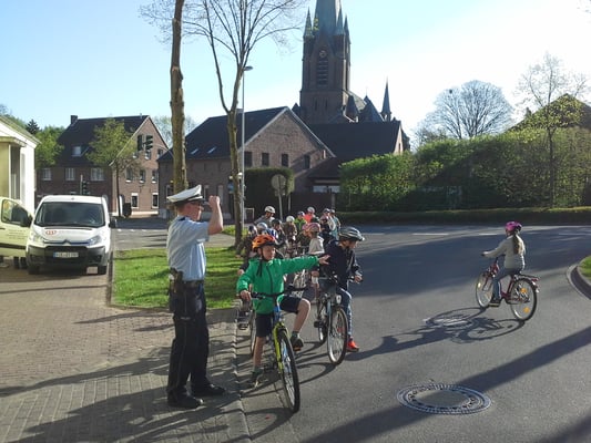 Als "Königsdisziplin" sollten die Kinder nach der letzten Runde schließlich zur Waldnieler Straße durchfahren und nach einem Linksabbiegen dort die Rückfahrt Richtung Schule antreten.