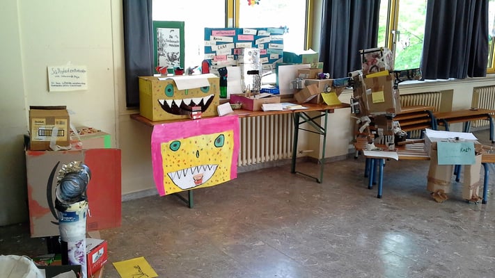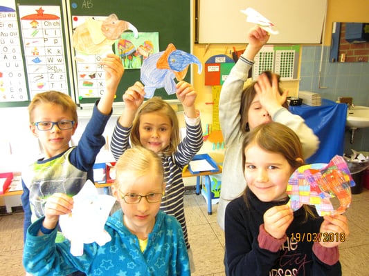 Wie es sich für eine Projektwoche gehört wurde in allen Klassen fächerübergreifend gearbeitet und fleißig gemalt, gebastelt, gezeichnet, gesungen, geschrieben, fotografiert, aufgenommen, ausgeschnitten, experimentiert und vieles mehr. Dass natürlich auch gelesen und vorgelesen wurde, versteht sich von selbst.