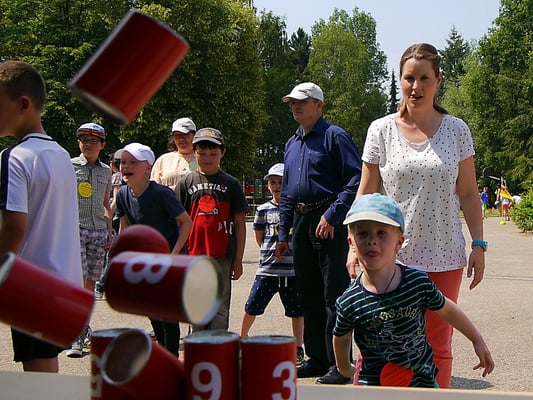Jedes Kind konnte sich eine Medaille abholen und darauf die besuchten Stationen abstempeln lassen. Wer alle acht Stempel erspielt hatte, der konnte mit seiner Medaille ein Stück Kuchen oder Getränk am Kuchen- oder Getränkestand erhalten.
