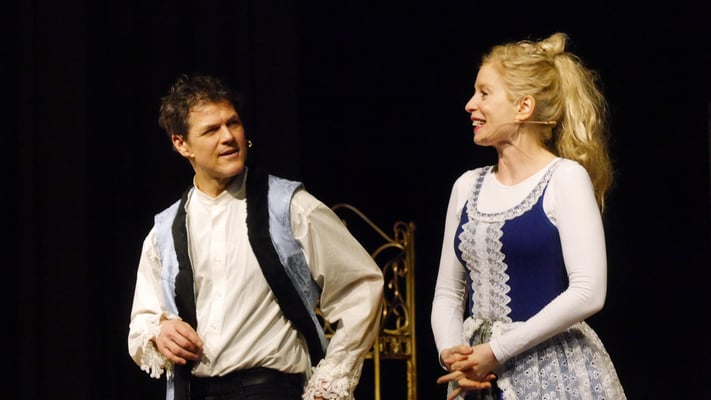 Die beiden Schauspieler schafften es wie jedes Jahr mit wenig Requisiten und ohne Bühnenbilder auszukommen. Dafür schlüpften sie aber mit großem schauspielerischem Talent in die zahlreichen Charaktere des Märchens, kitzelten die Phantasie der Kinder hervor und sorgten für eine unterhaltsame und märchenhafte Aufführung.