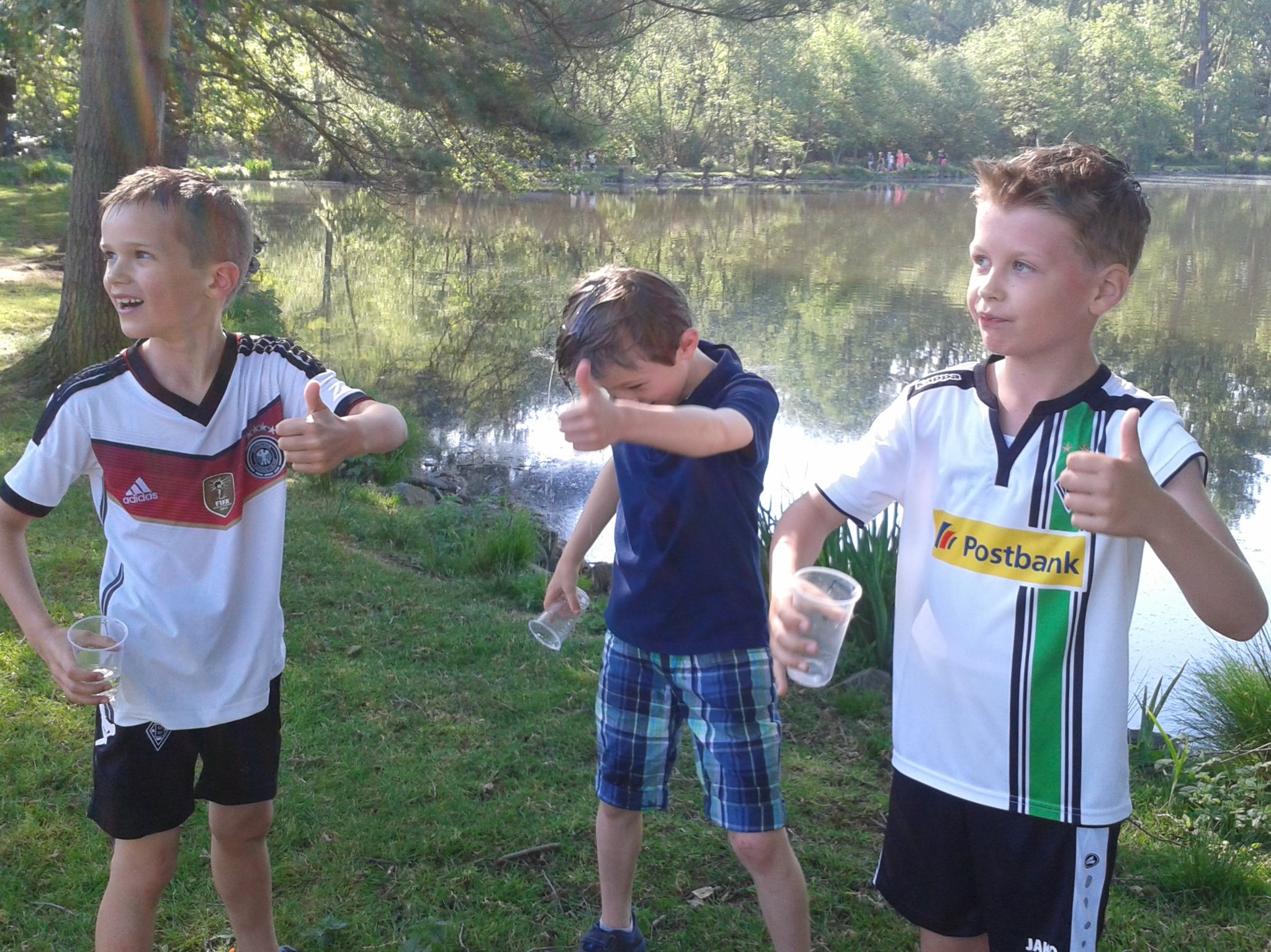 Dummerweise hatte der Trainer sich vorher dazu überreden lassen, dass er bei einem ersten, zweiten oder dritten Platz ins Wasser geschubst werden dürfe. Diesen Spaß ließen sich die Kinder anschließend natürlich nicht nehmen!