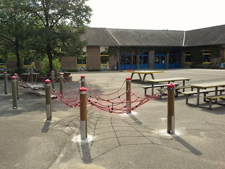 Pünktlich zum Start ins neue Schuljahr ist auf unserem oberen Schulhof eine Erweiterung des Niederseilgartens installiert worden.