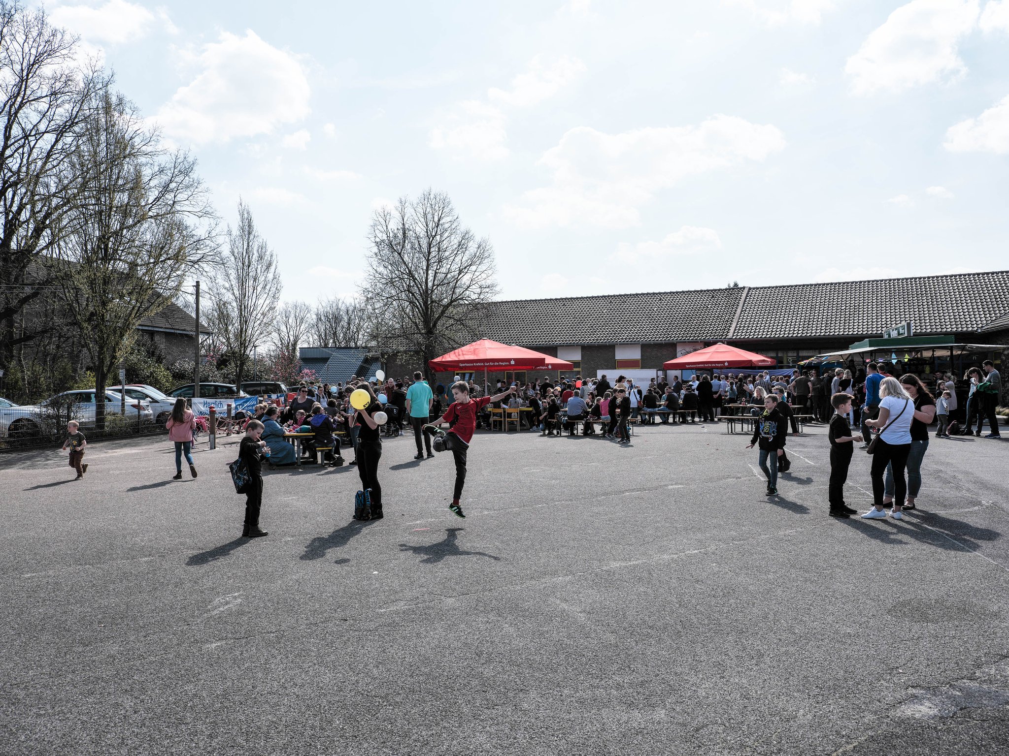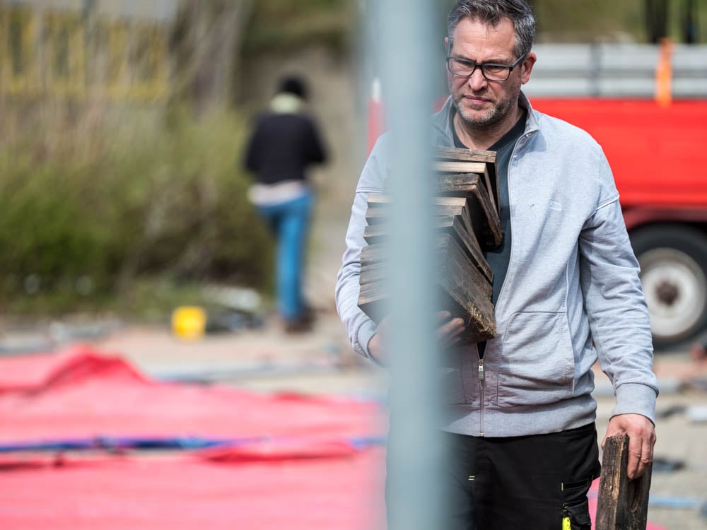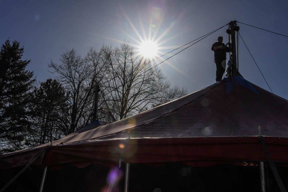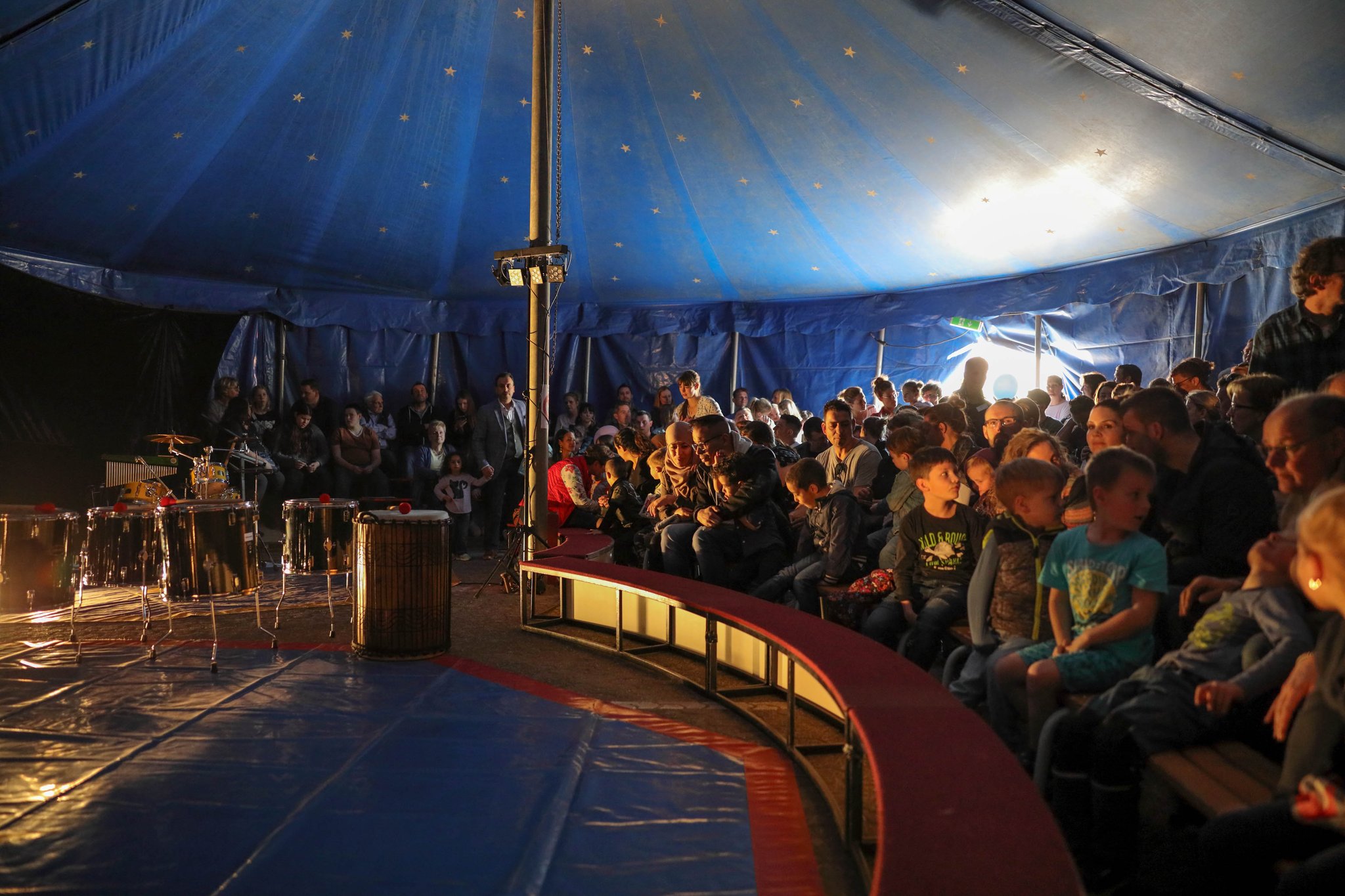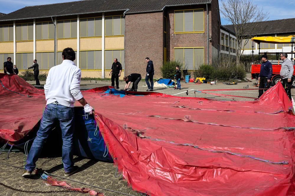 Dank einer Menge Menpower aus der Elternschaft haben wir am Sonntag vor unserer Zirkusprojektwoche innerhalb von ca. vier Stunden mit vereinten Kräften erfolgreich das Zirkuszelt auf dem unteren Schulhof errichtet. Wir danken allen fleißigen Helfern!