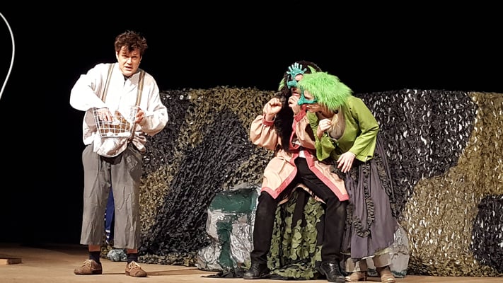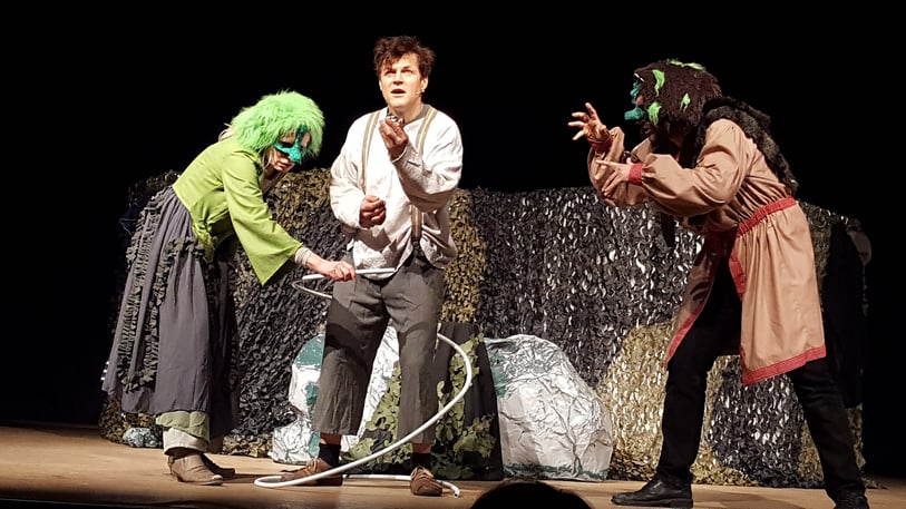 Die drei Schauspieler entführten ihr Publikum für zwei Schulstunden ins Reich der Trolle und unterhielten mit einfachem Bühnenbild durch großartige Schauspielerei, viel Witz und musikalische Auszüge aus der Peer-Gynt-Suite von Edward Grieg.