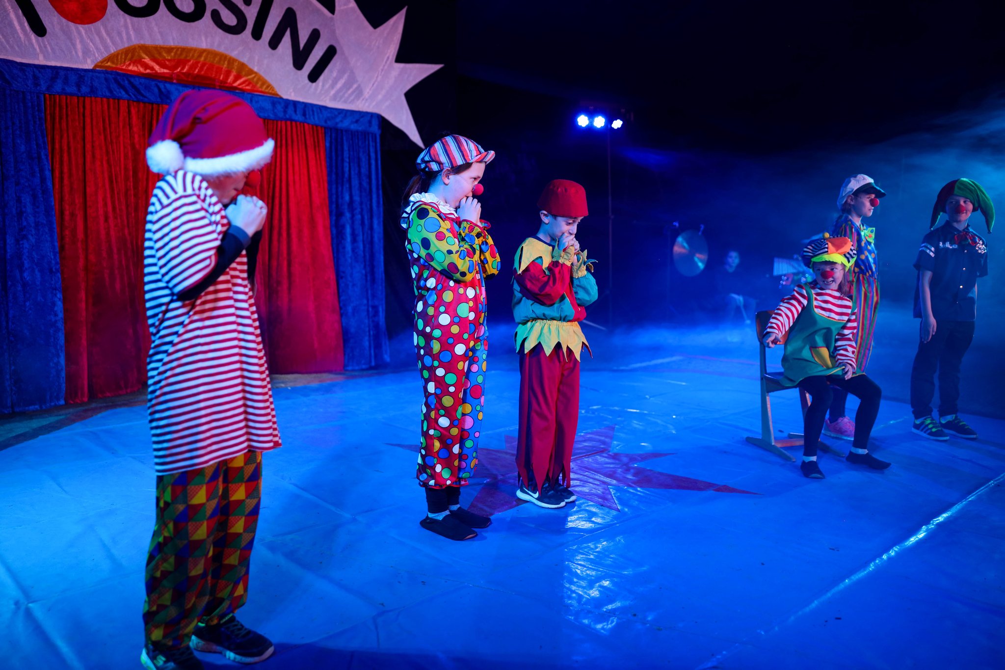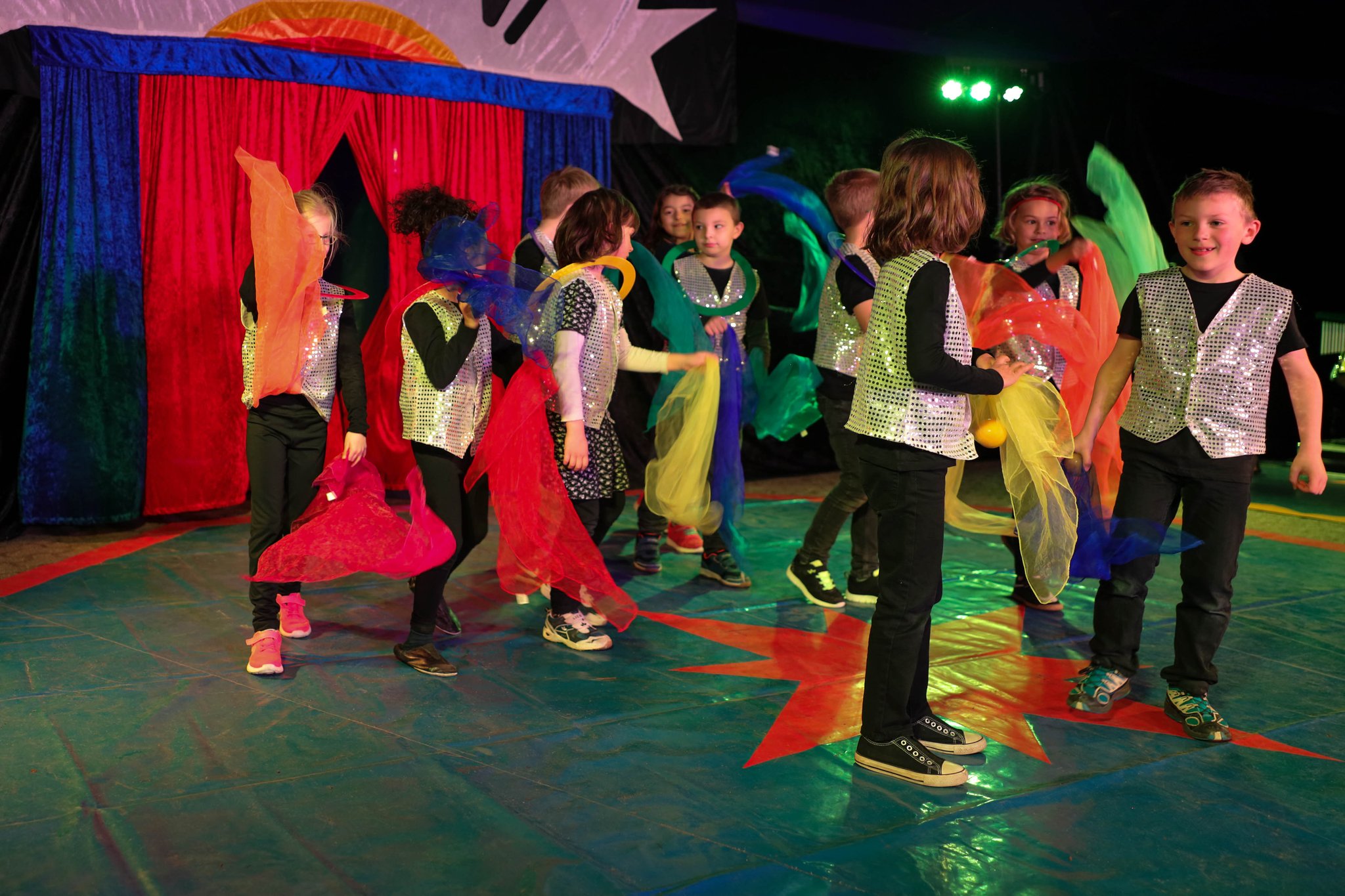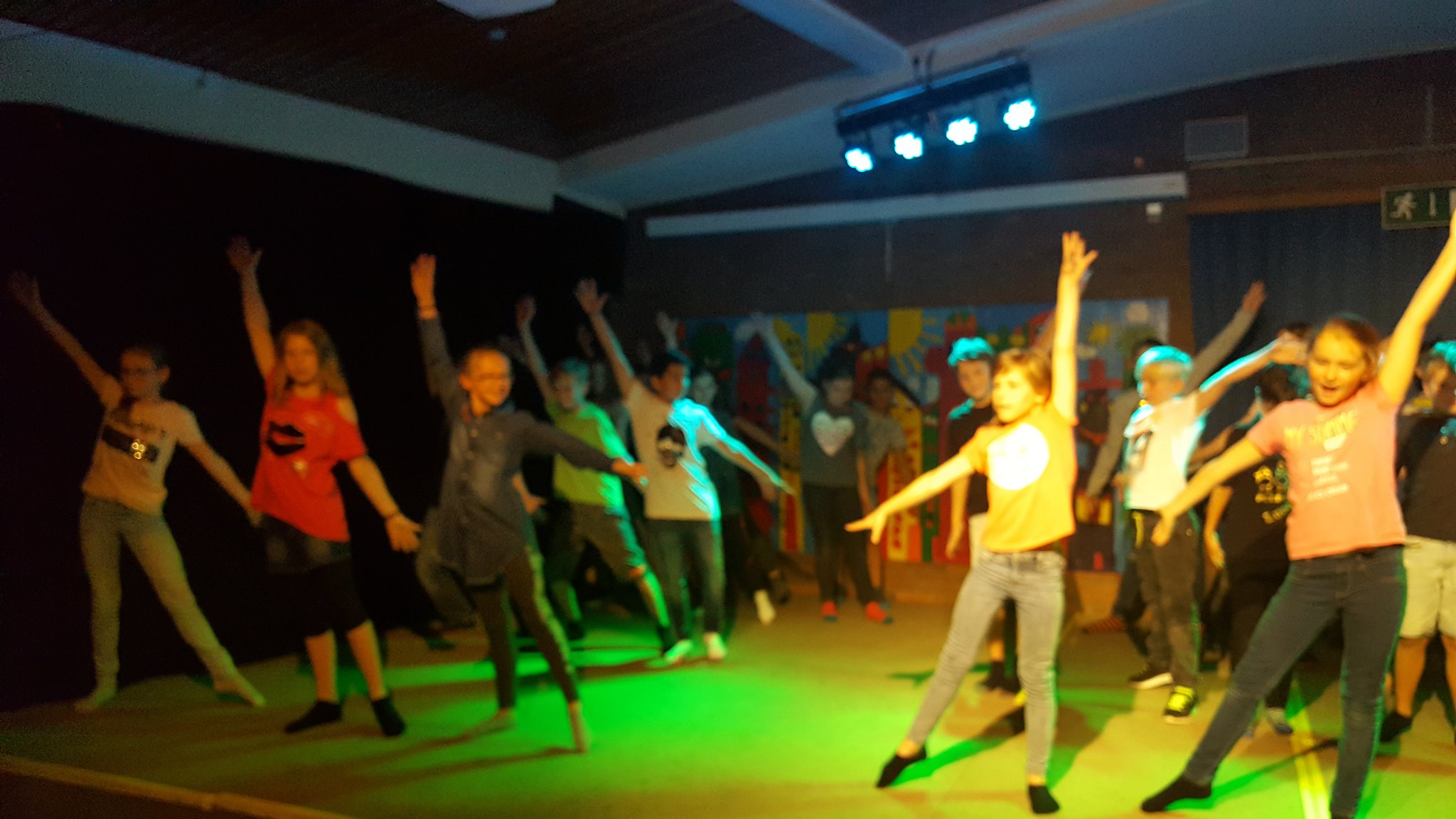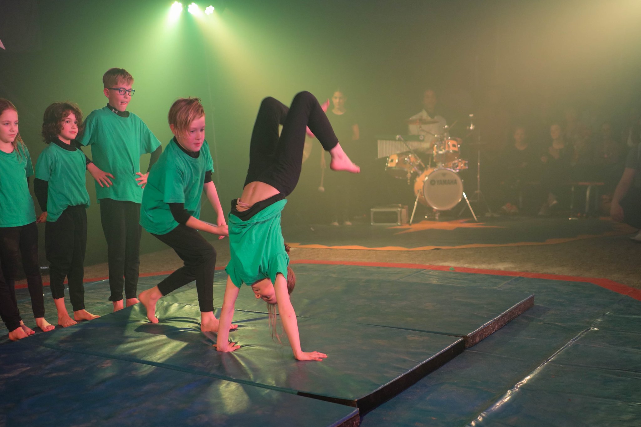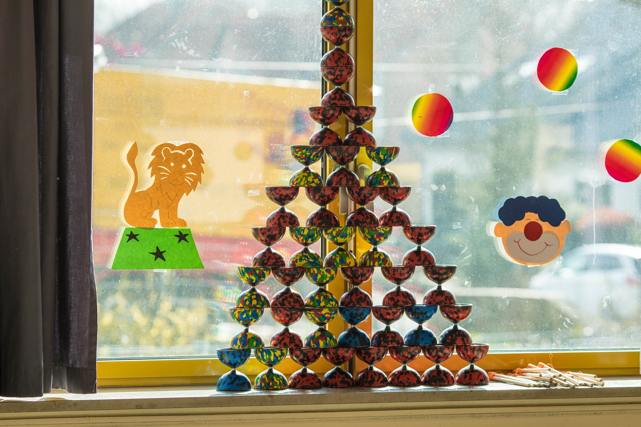 Nach drei Tagen intensivem Üben in den Workshops mit den Zirkuspädagogen, außerdem täglichem freiem Üben mit allen Requisiten und einem zusätzlichen klasseninternen Programm zum Thema Zirkus, haben die Kinder nun eine Menge neue künstlerische Fähigkeiten und Fertigkeiten erworben und sind jetzt in der Lage, die morgige Generalprobe zu meistern.