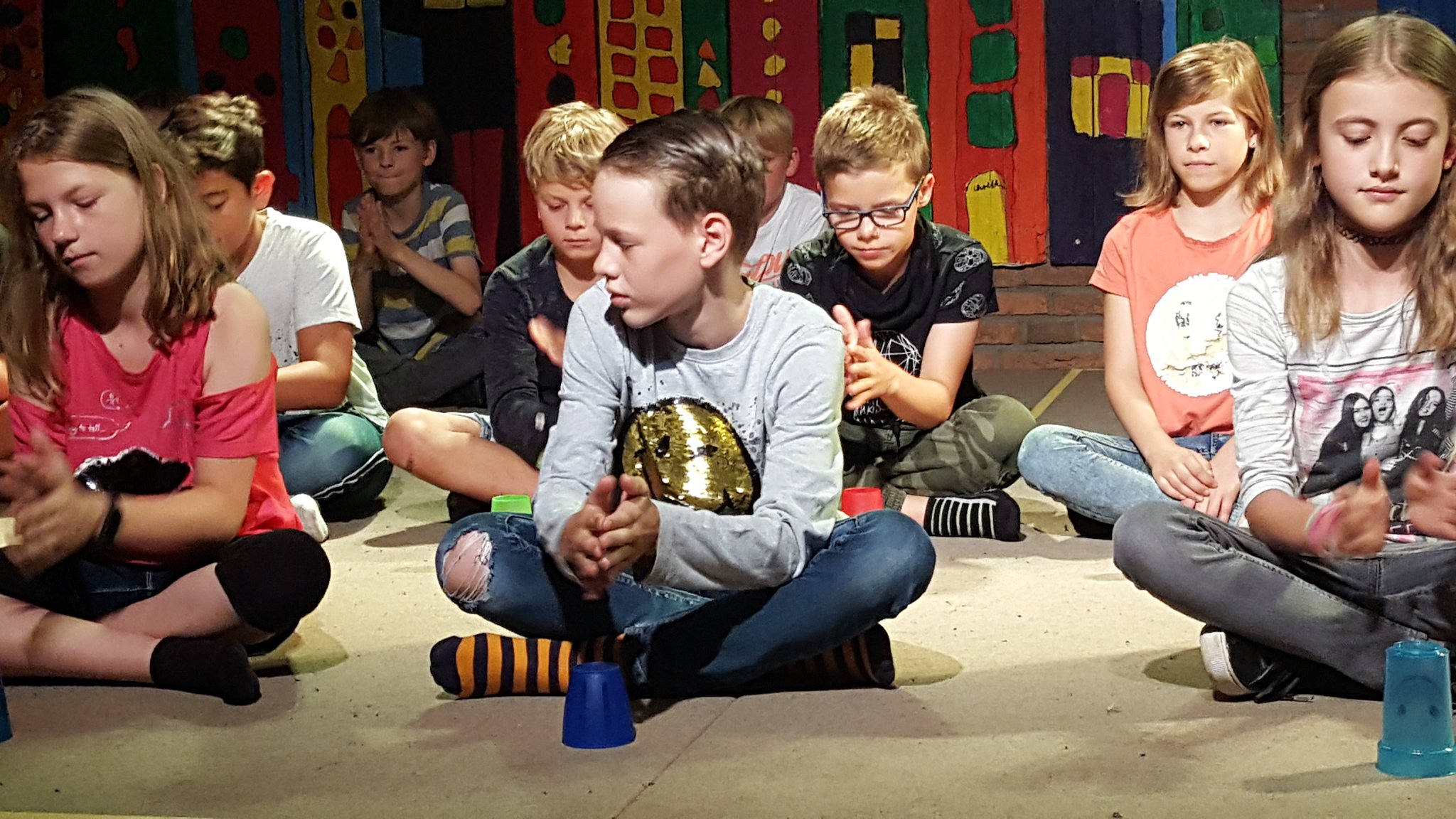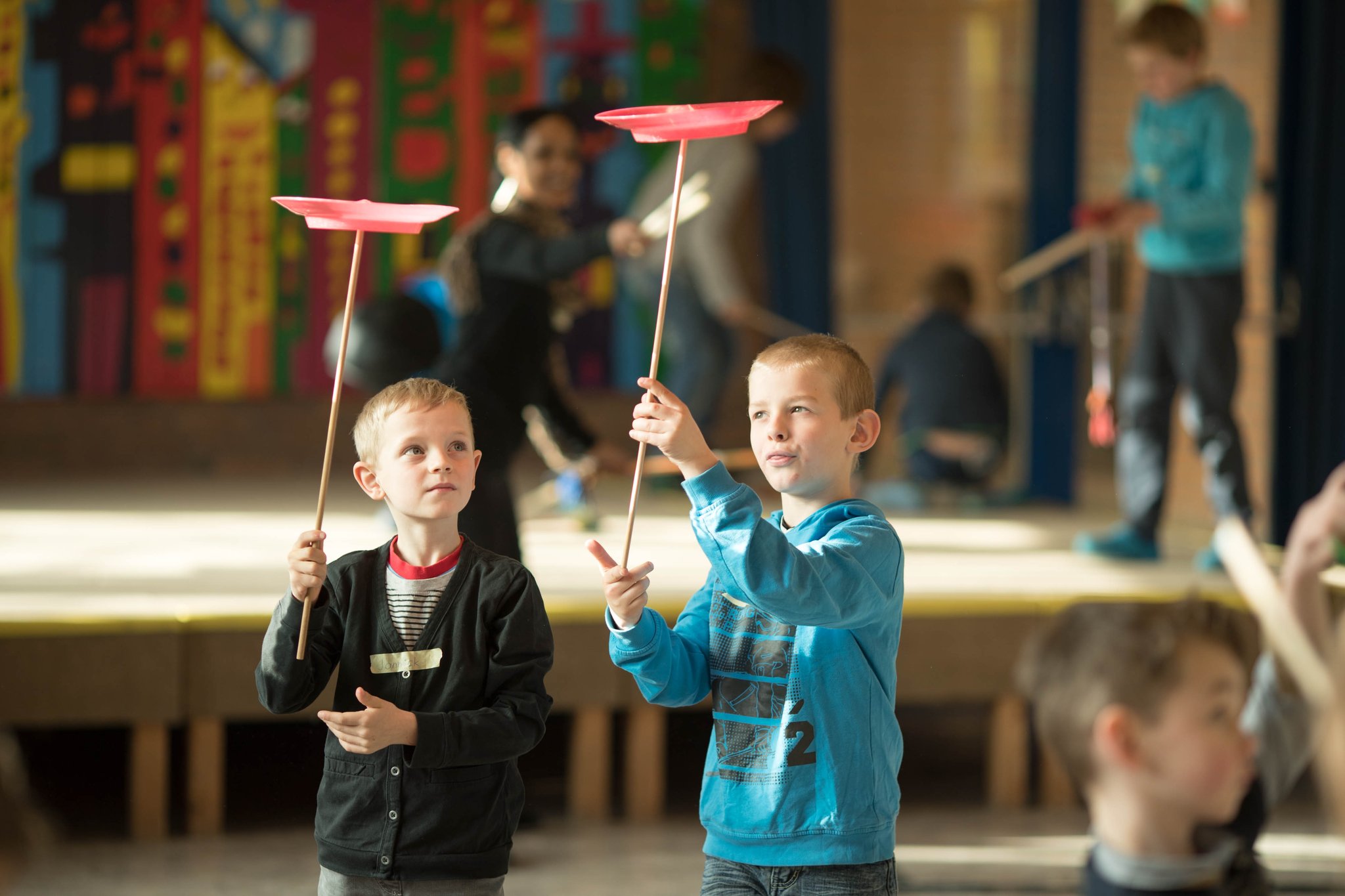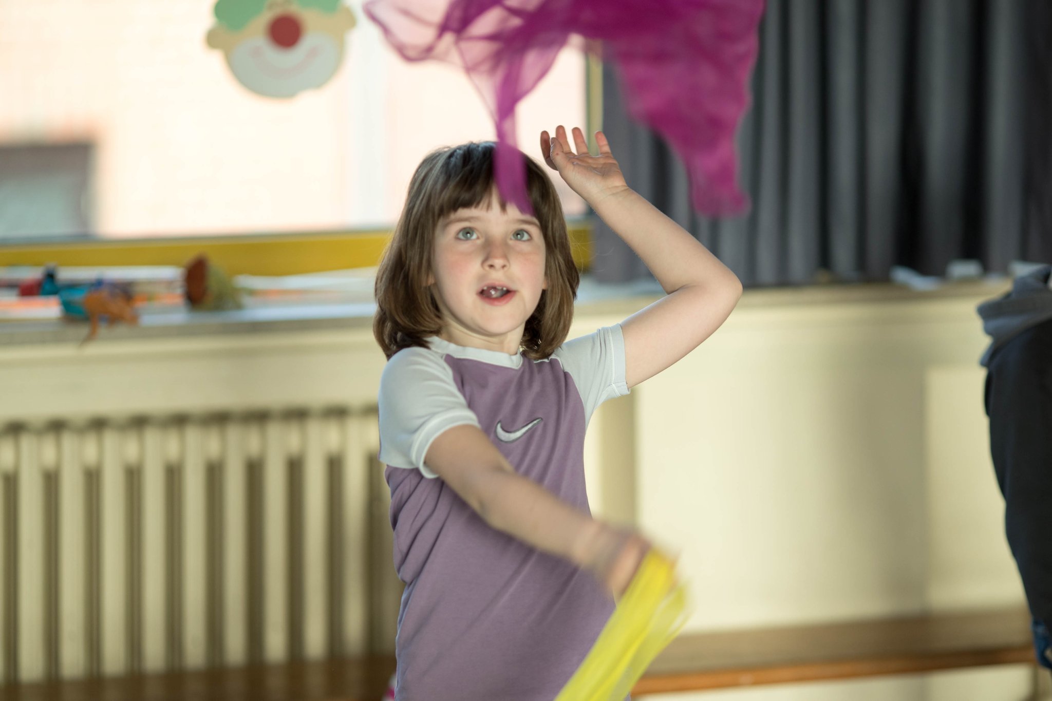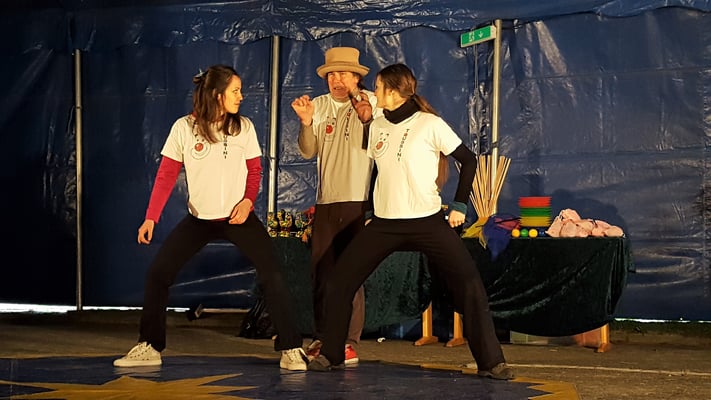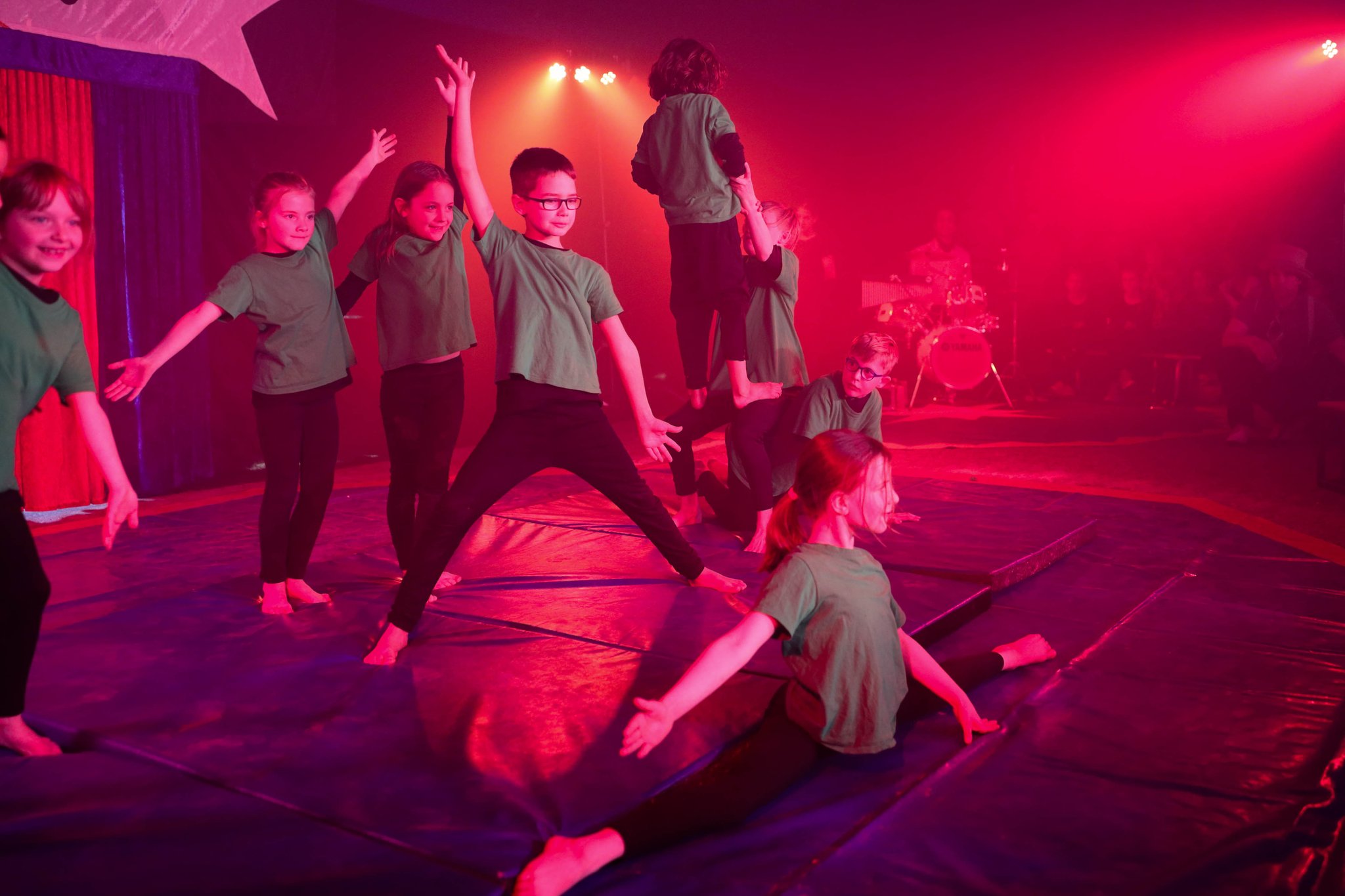 Nach drei Tagen intensivem Üben in den Workshops mit den Zirkuspädagogen, außerdem täglichem freiem Üben mit allen Requisiten und einem zusätzlichen klasseninternen Programm zum Thema Zirkus, haben die Kinder nun eine Menge neue künstlerische Fähigkeiten und Fertigkeiten erworben und sind jetzt in der Lage, die morgige Generalprobe zu meistern.