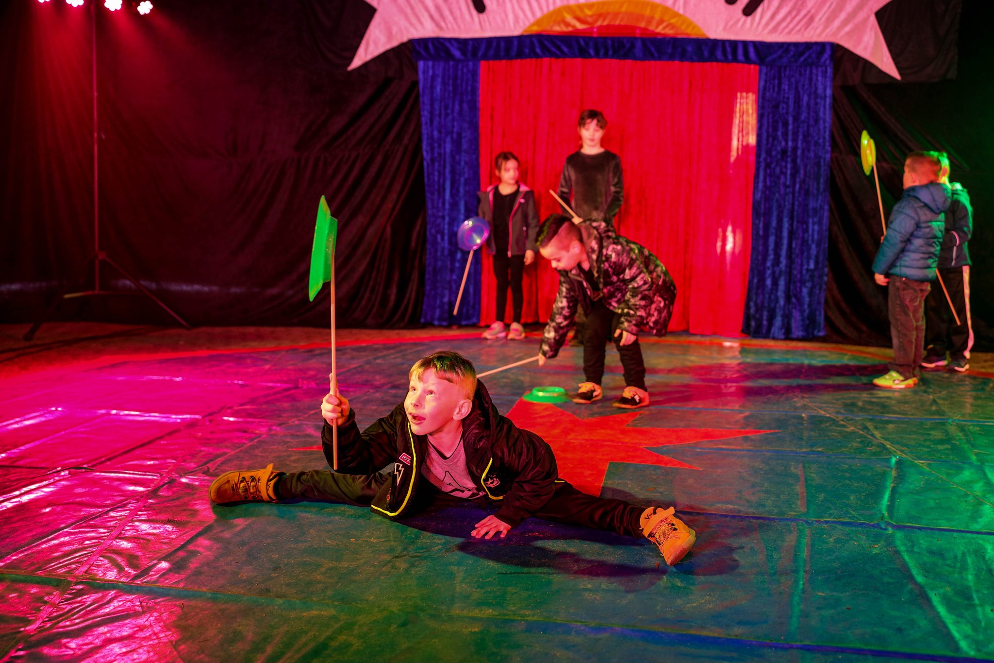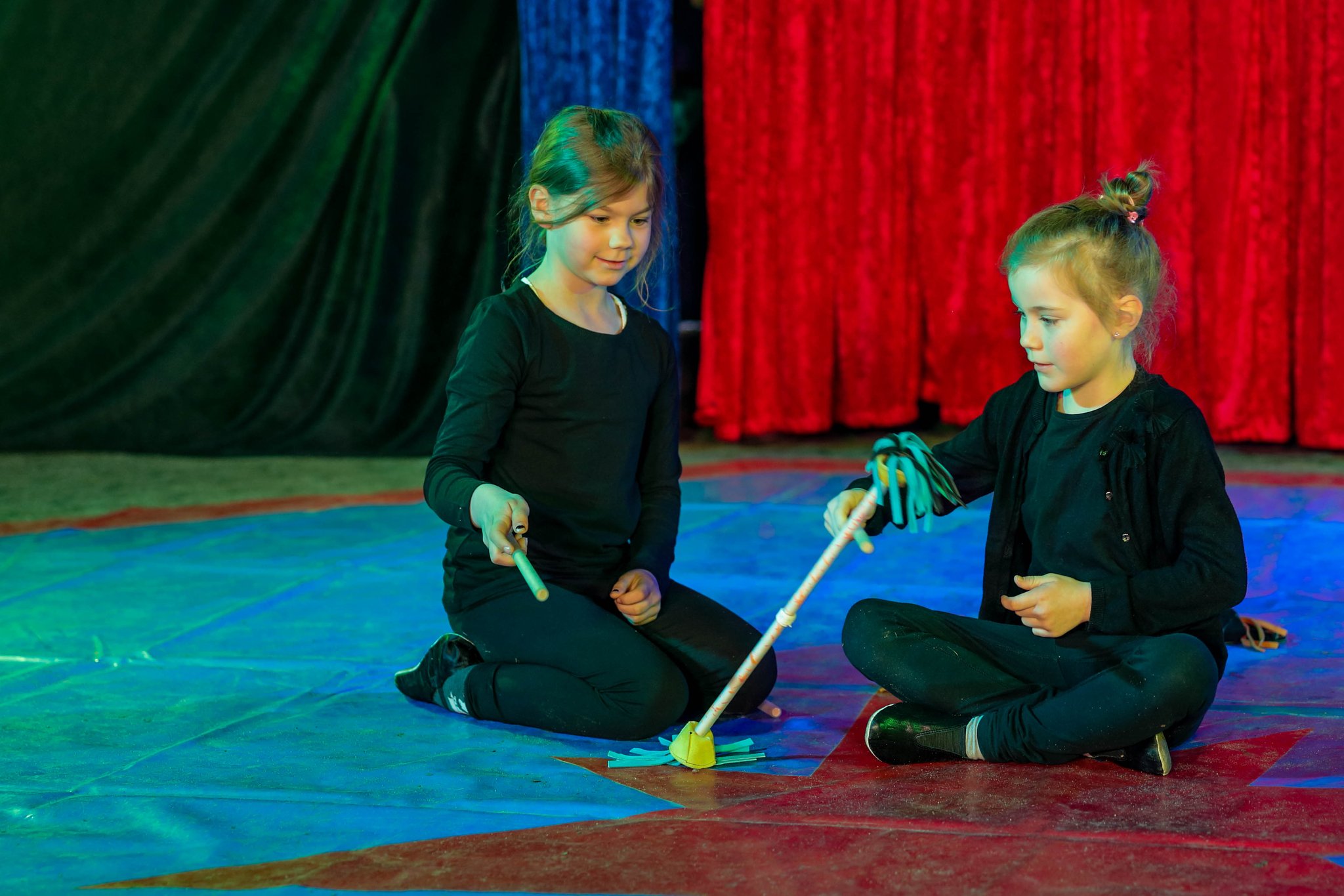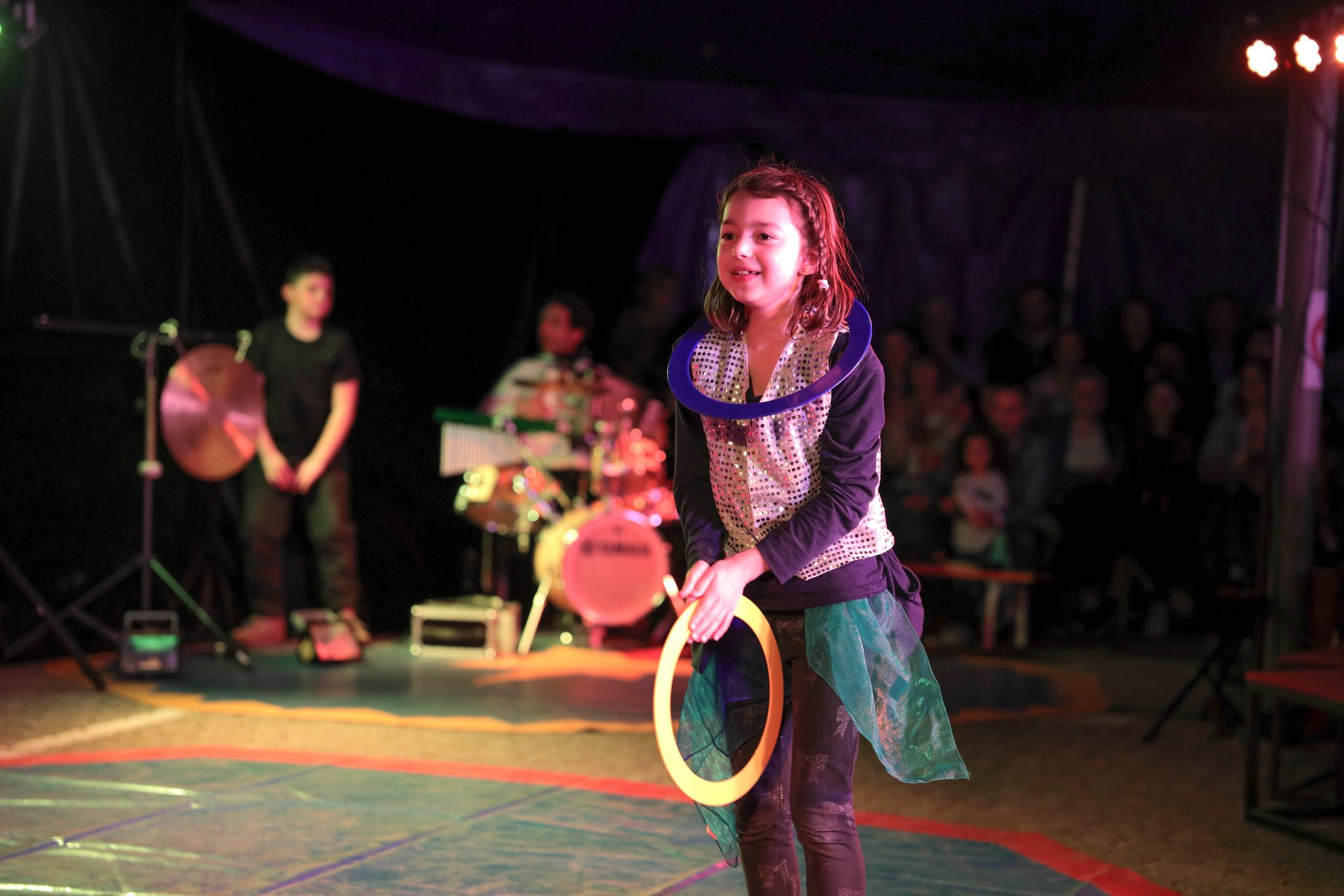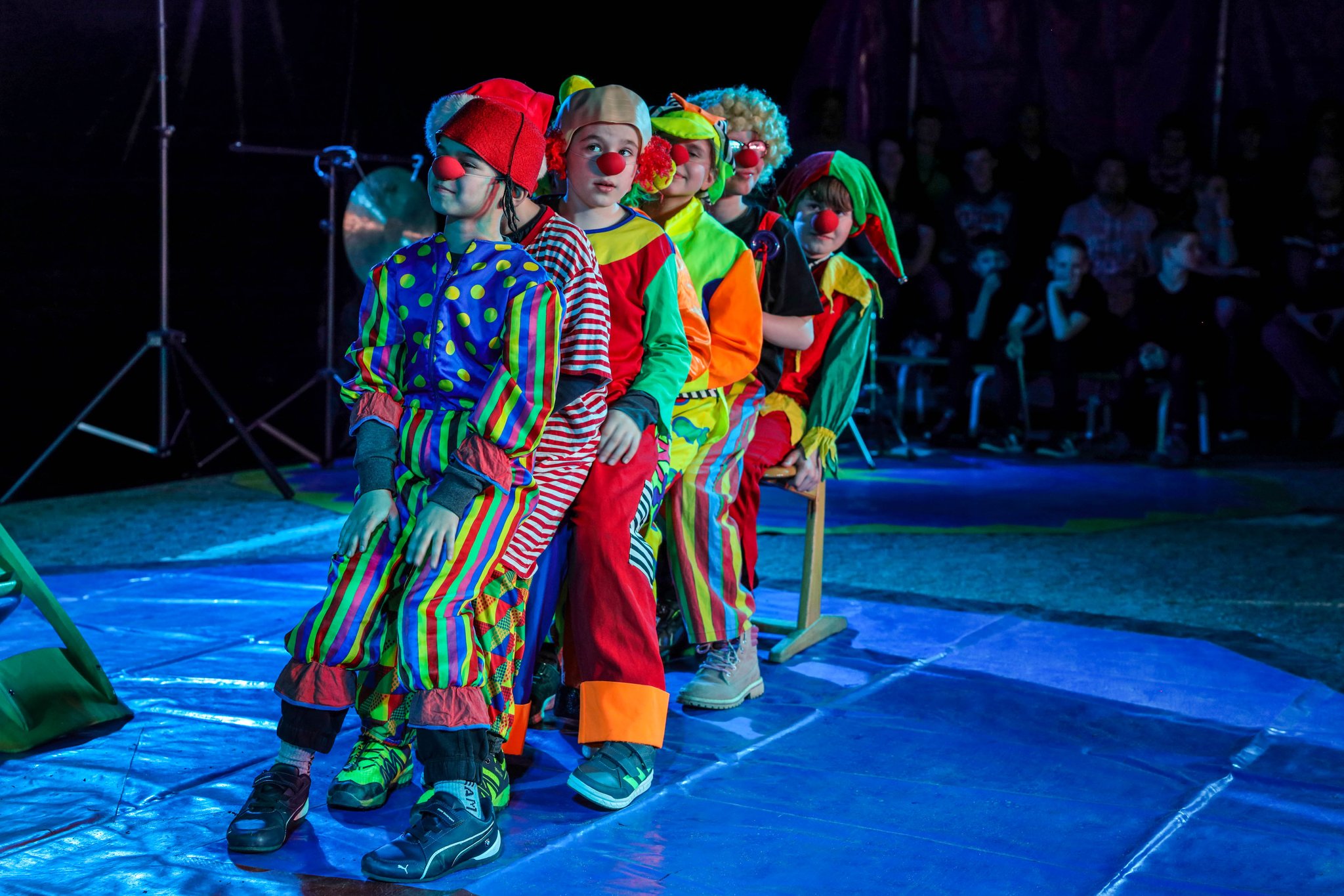 Nach drei Tagen intensivem Üben in den Workshops mit den Zirkuspädagogen, außerdem täglichem freiem Üben mit allen Requisiten und einem zusätzlichen klasseninternen Programm zum Thema Zirkus, haben die Kinder nun eine Menge neue künstlerische Fähigkeiten und Fertigkeiten erworben und sind jetzt in der Lage, die morgige Generalprobe zu meistern.