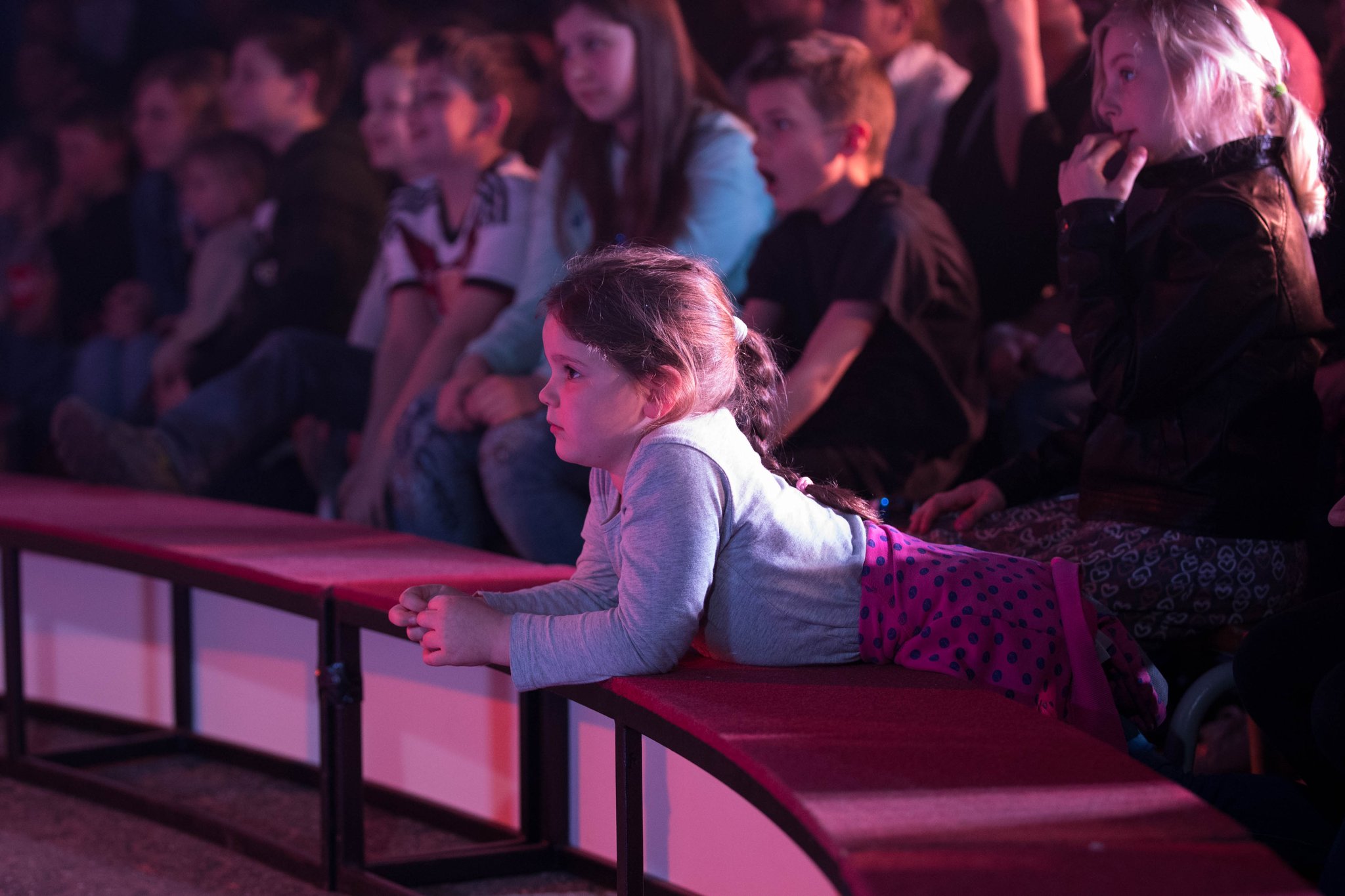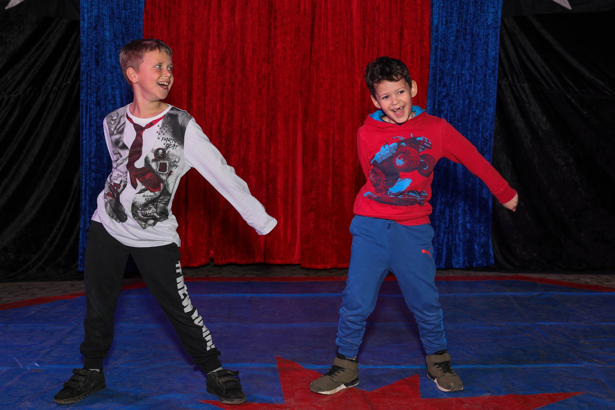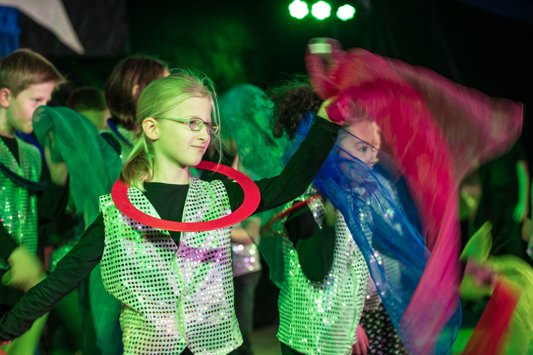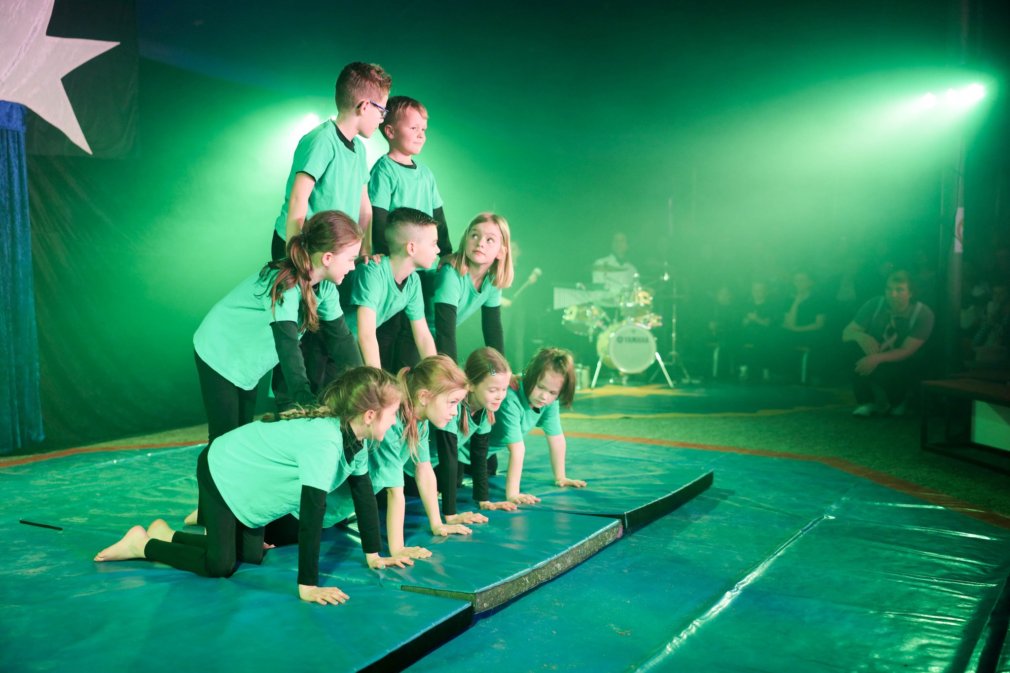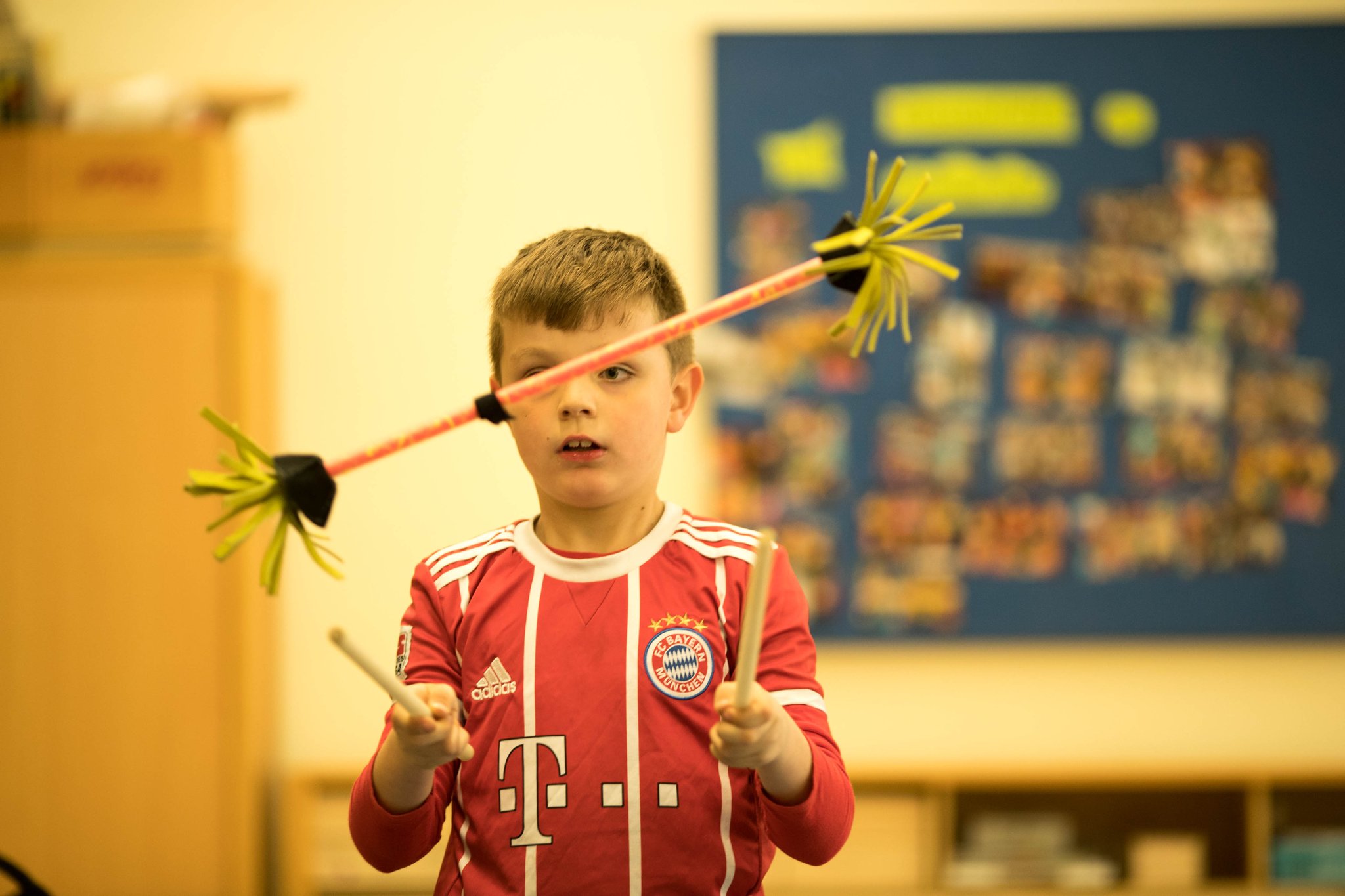 Nach drei Tagen intensivem Üben in den Workshops mit den Zirkuspädagogen, außerdem täglichem freiem Üben mit allen Requisiten und einem zusätzlichen klasseninternen Programm zum Thema Zirkus, haben die Kinder nun eine Menge neue künstlerische Fähigkeiten und Fertigkeiten erworben und sind jetzt in der Lage, die morgige Generalprobe zu meistern.