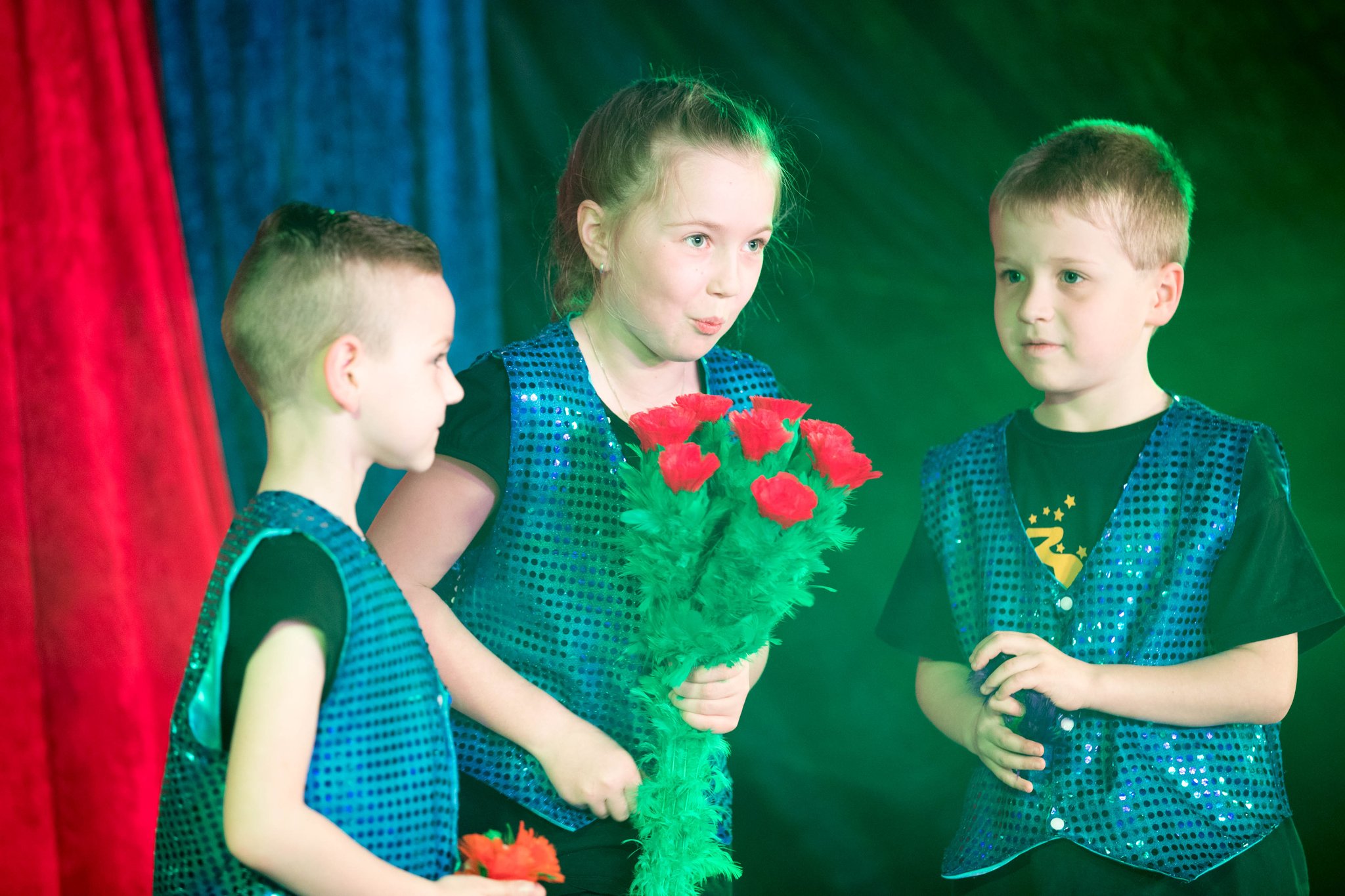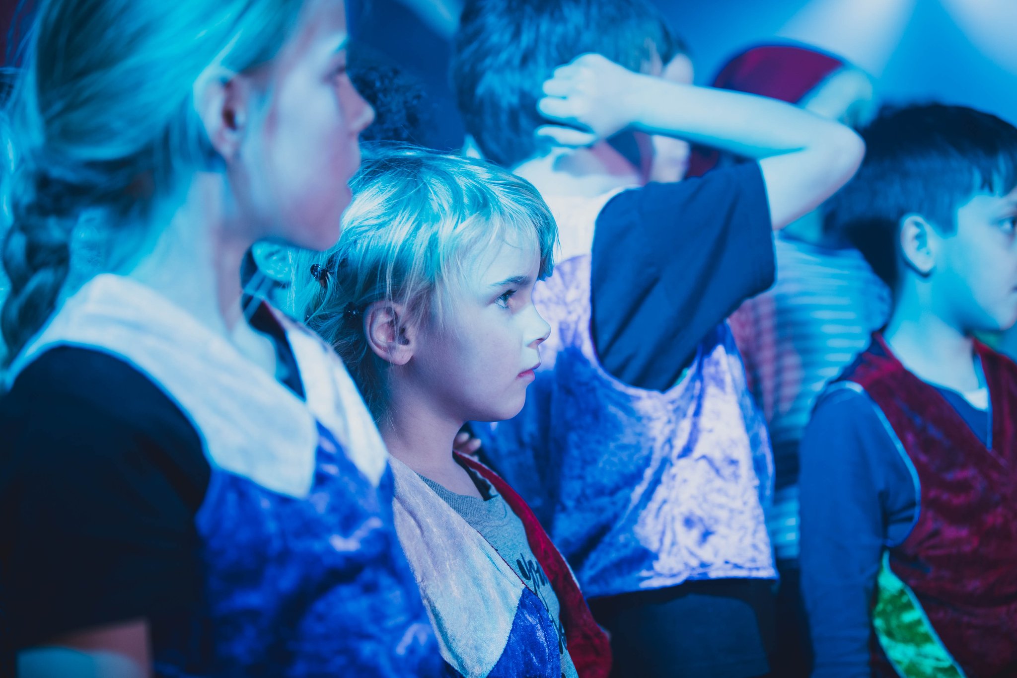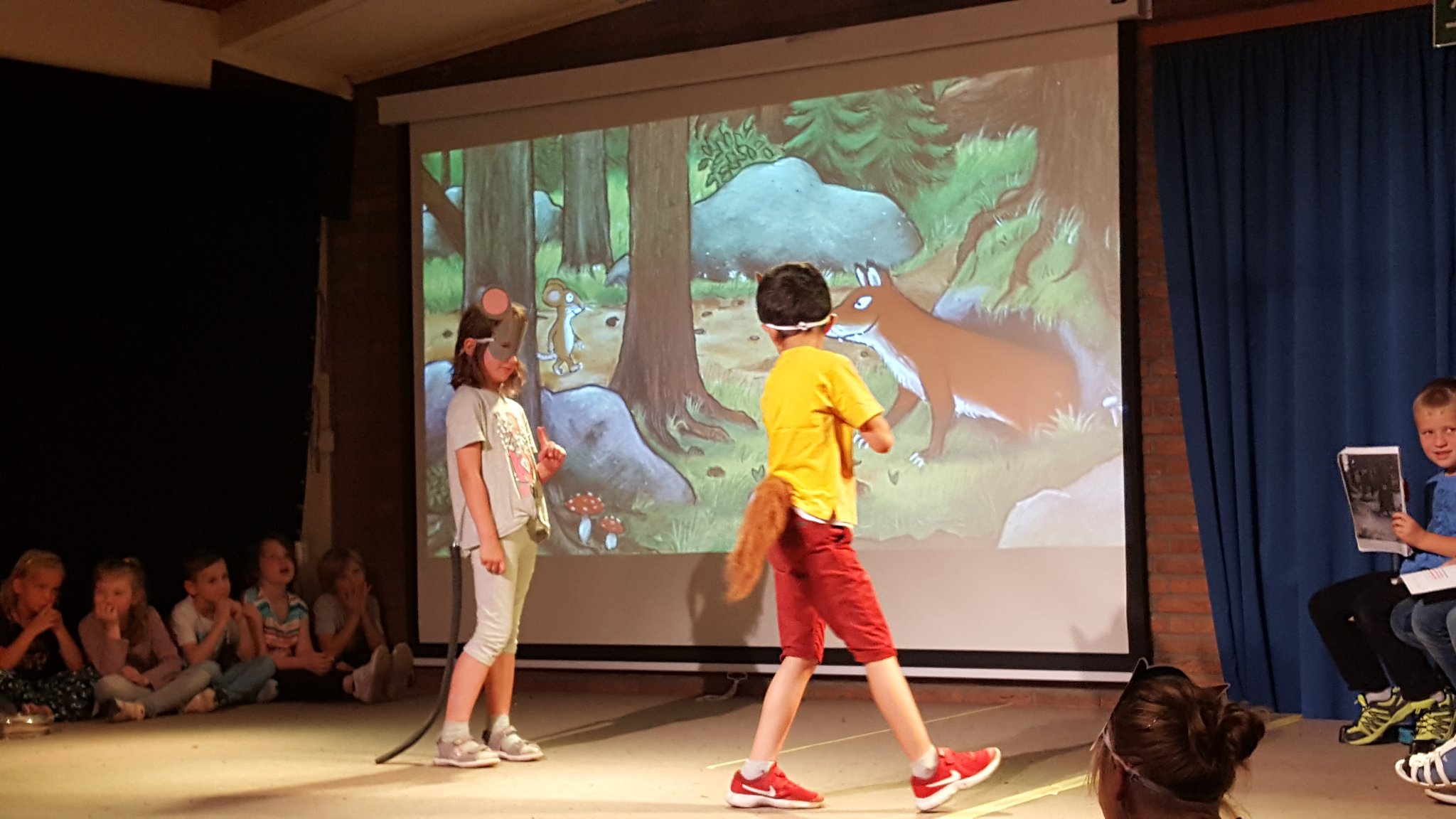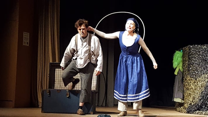 Wie gewohnt schlüpften die Darsteller dabei in mehrere, teils gegensätzliche Rollen und verwandelten sich immer wieder im Halbdunkel auf der Bühne vor den Augen der Kinder in die unterschiedlichen Charaktere.