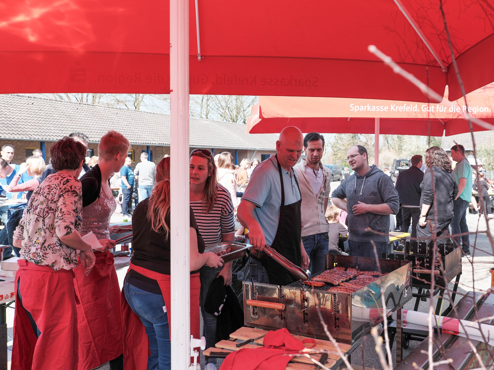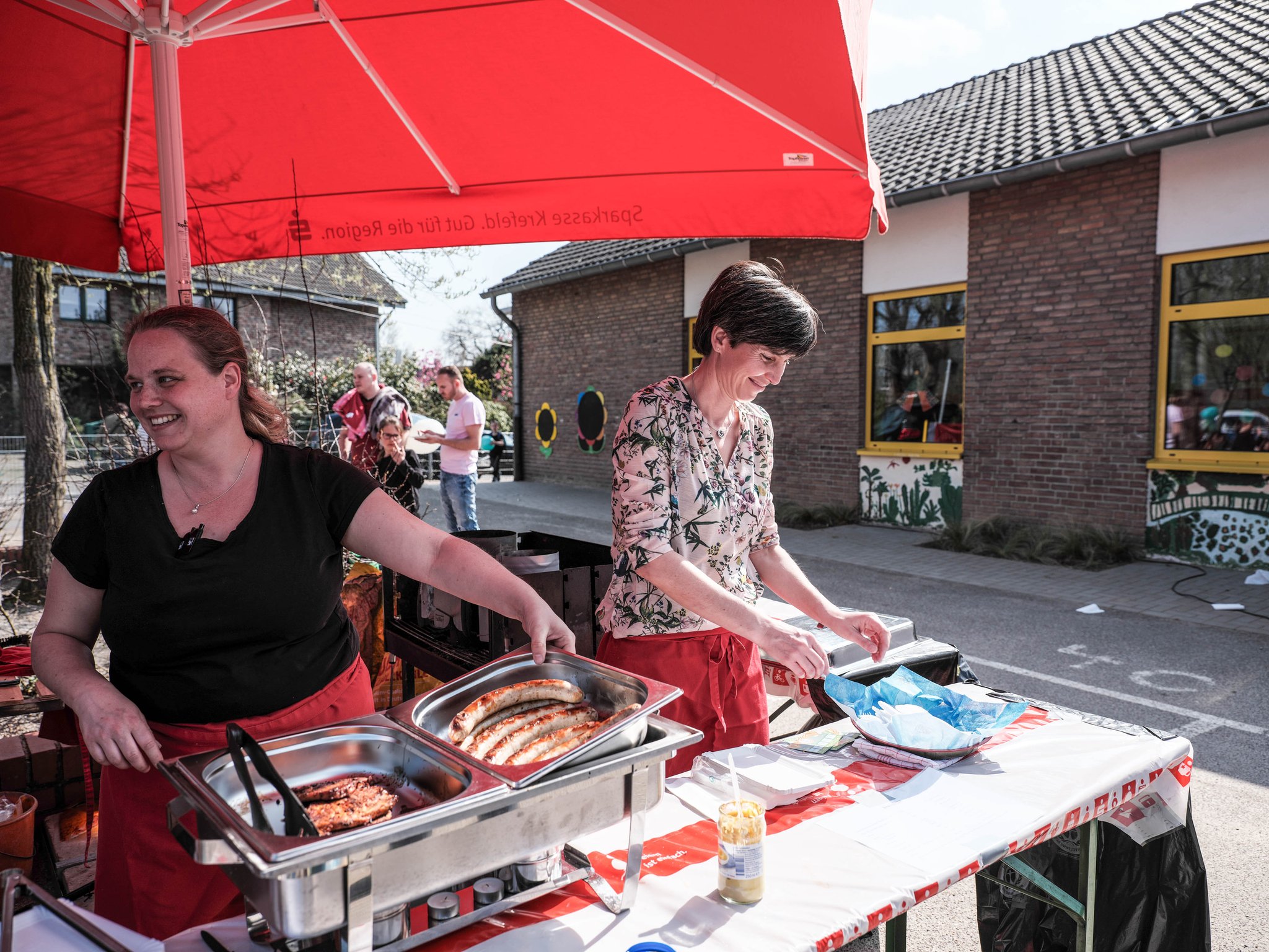 Dank der Organisation unserer Schulpflegschaft waren alle bestens mit Leckereien vom Grill, mit Salaten, kühlen Getränken sowie Kaffe und Kuchen versorgt. Und natürlich wurde zu den Zirkusvorstellungen auch Popcorn verkauft.