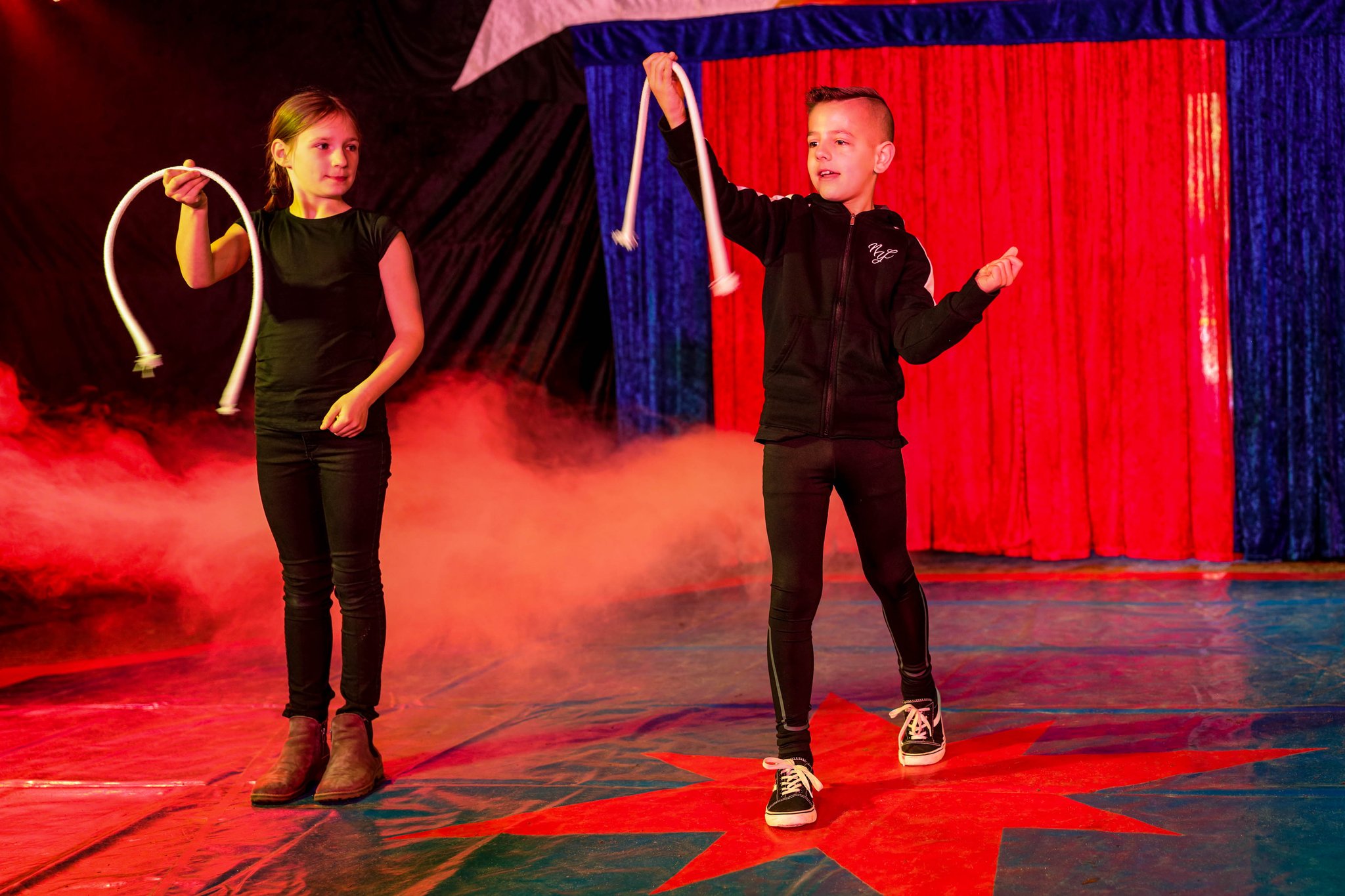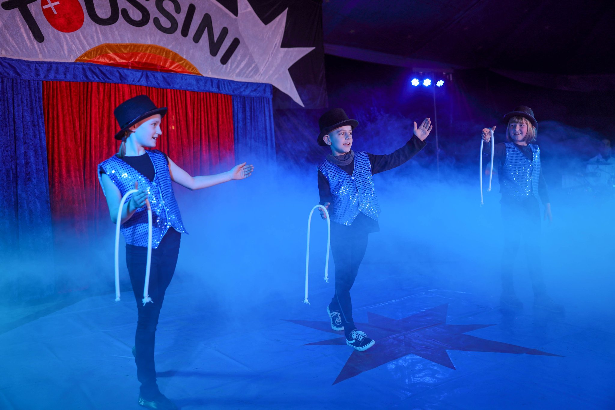 Die Aufführung am Ende des Projekts ist für alle frisch gebackenen Artisten dann der Höhepunkt. Dort können sie allen zeigen, was in ihnen steckt. Sie werden jonglieren, zaubern und verzaubern, sie werden belustigen und knisternde Spannung mitten ins Publikum bringen. Untermalt werden die fulminanten Aufführungen von professionellen Lichteffekten, Livemusik und selbstverständlich von tosendem Applaus. Die Aufführungstermine und Uhrzeiten können dem nebenstehenden Flyer entnommen werden.
