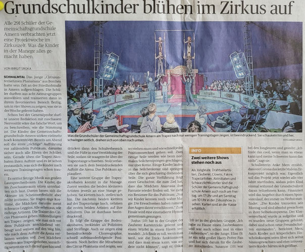 Vom 31. März bis zum 4. April fand in diesem Jahr unsere Zirkusprojektwoche unter der Leitung des Zirkus Phantasia statt. Die Rheinische Post berichtete: