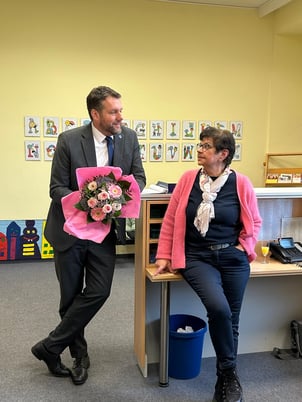 Nach 16 Jahren voller Engagement, Herzlichkeit und unermüdlichem Einsatz verabschiedeten wir am 14.1.2026 unsere Schulsekretärin Ria Clemens in den wohlverdienten Ruhestand. Mit stets offenem Ohr und dem Herzen auf der Zunge war sie für Kinder, Eltern und Kollegium eine verlässliche Anlaufstelle – bei kleinen Alltagsfragen ebenso wie bei großen Sorgen. Sie hat getröstet, verarztet, organisiert und verwaltet, immer mit Menschlichkeit und Wärme.